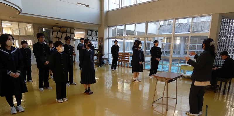 1月8日(木)3学期の始業式を行いました。全校で校歌を歌った後、代表生徒が3学期の抱負や目標を発表し、新しい年のスタートに相応しい式となりました。2026年も生徒一人一人が活躍できるよう職員全員で支えていきます。保護者・地域の皆様のご支援・ご協力をよろしくお願いいたします。